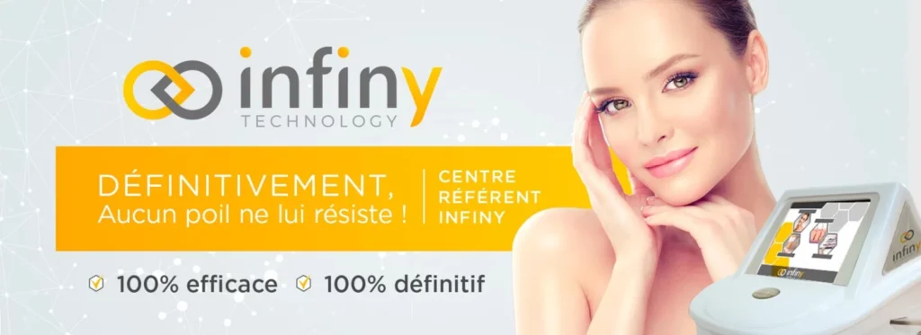 INFINY : La révolution pour les poils ! La technologie INFINY est une technique qui permet de traiter tous les poils quel qu’en soit la zone, la couleur et l’épaisseur.